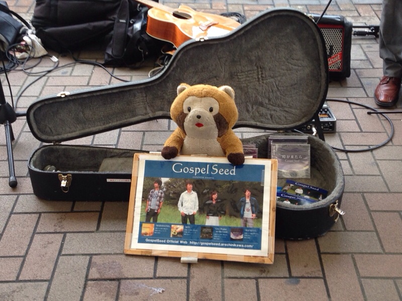 最近は、ラスカルも路上ライブでお手伝いするようになりました! コンサートのチラシも、ラスカルのそばから、自由に受けとっていただけてます! Gospel Seed ハルミ