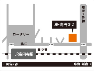 〝こころごすぺる〟は、座•高円寺で行います。最寄り駅はJR高円寺駅です。是非お越しください。