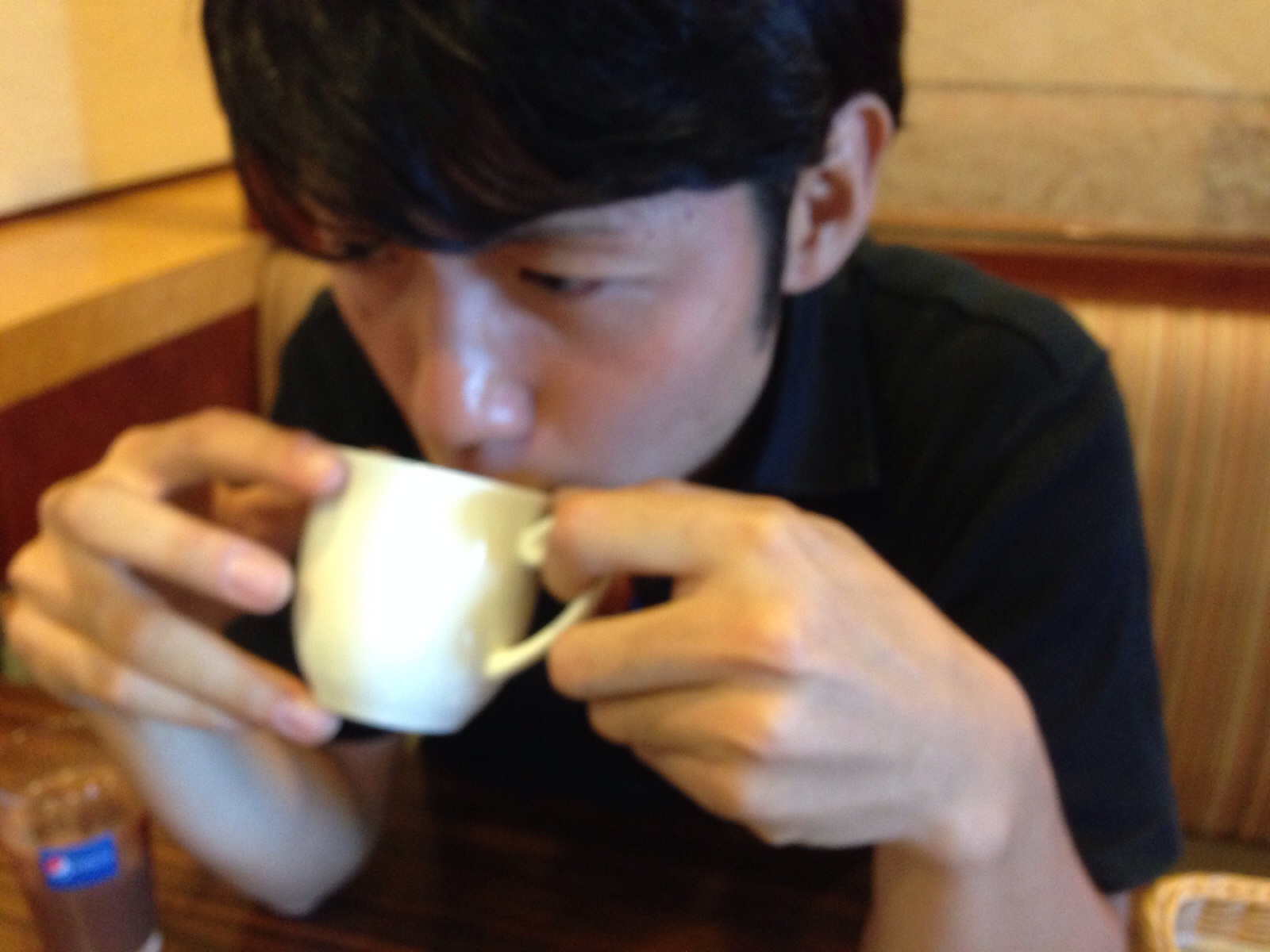 終わったので、遅いお昼を食べます。コーンスープ?飲んでます。 受付スタッフNaomi