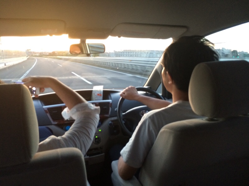 眠い顔ですが、戻ります! 途中、閉じるまぶたに勝てず、運転を光くんにタッチしました!