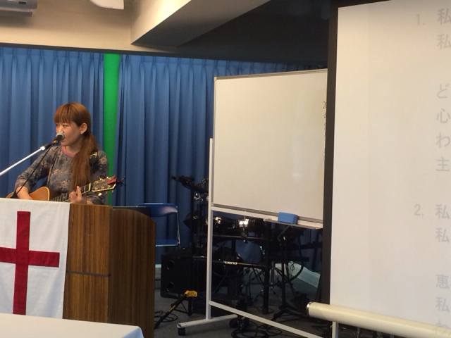 今日は奏楽の大野さんがお休みなので、由美ちゃんがギターで奏楽をしてくれてます。