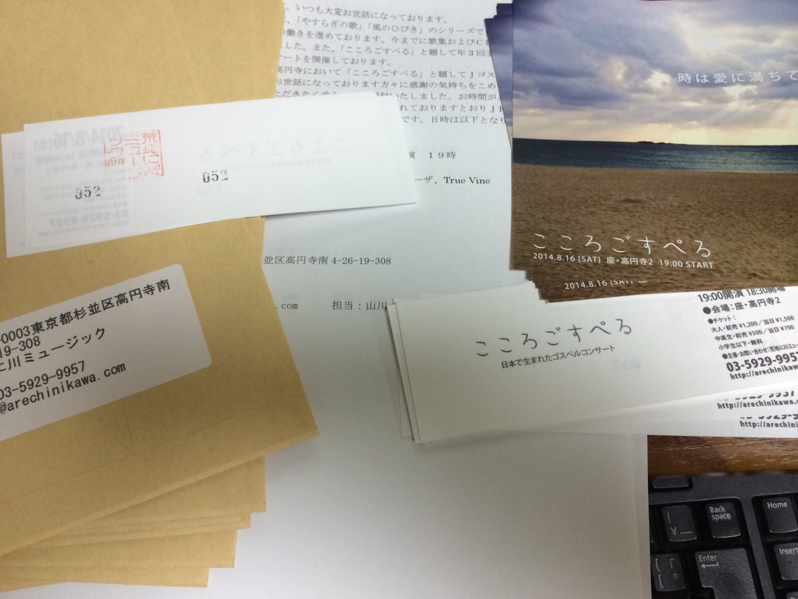 関係各位に招待状を送りました。来てくださるとうれしいです。 裏方テモテ