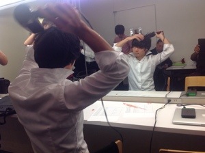 ナルシーズの二人、髪をセット中! かれこれ10分くらい経とうとしています。