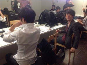 さっきまで勉強中のだった、シオンくん! 映像出しのお仕事をすることになりました。