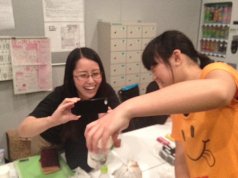 あっちゃんの書いた、紙コップの絵をブログアップする香ちゃん。