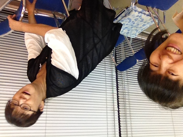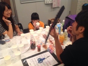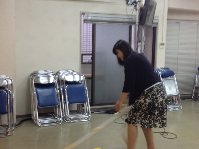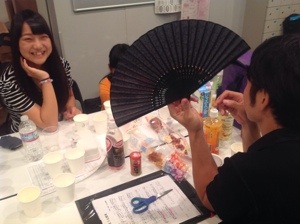 うちわを広げて、仰木の舞を見せるダビデくん!