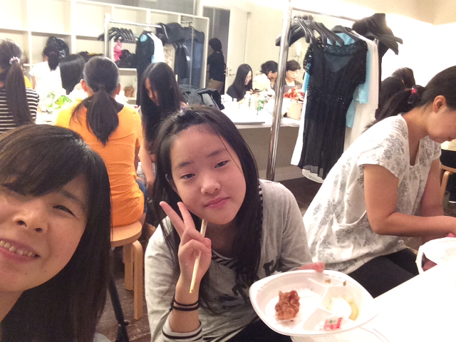 ノアちゃんとお弁当を食べています。 女子楽屋にて Gifts Kayano