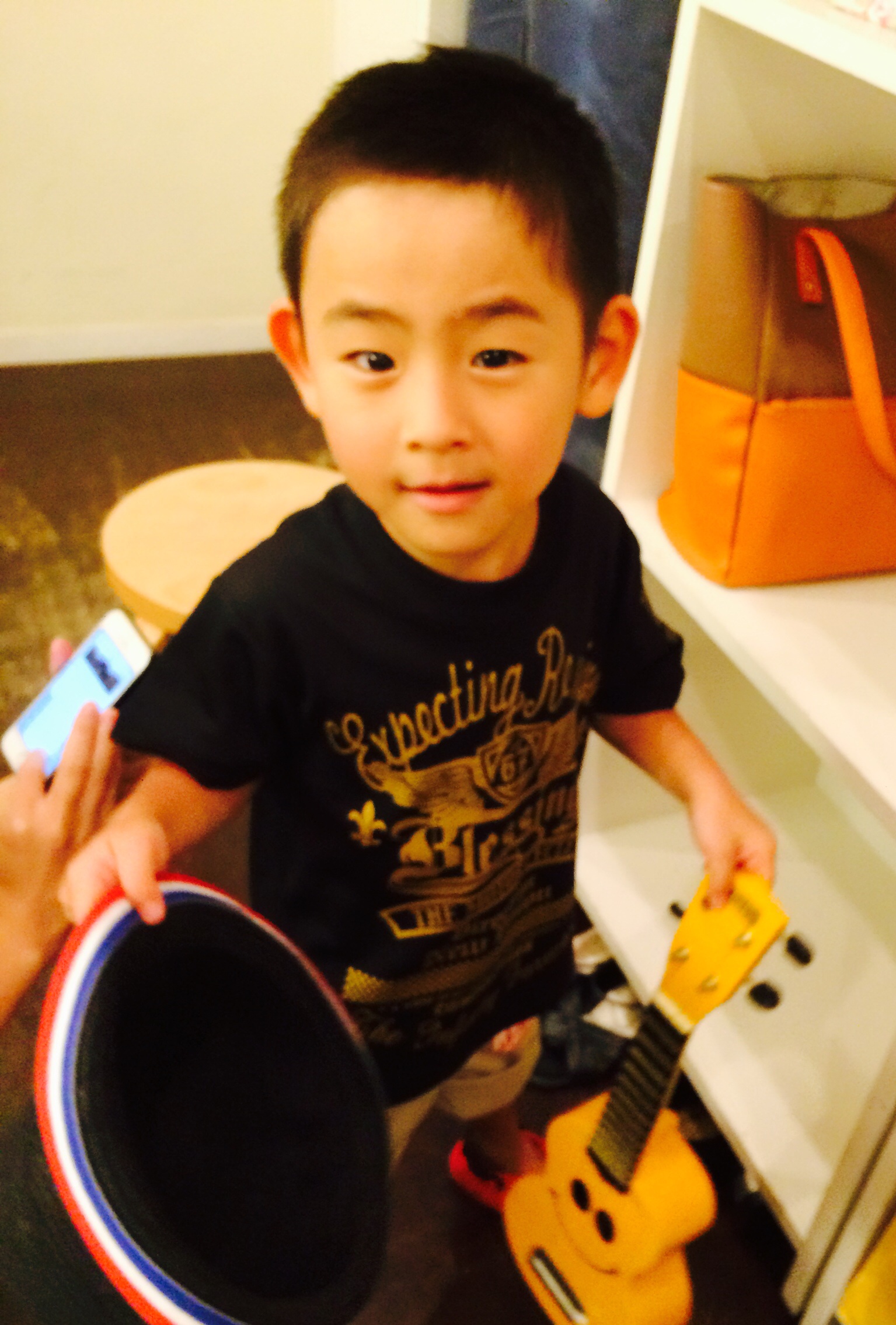 ヨッシー到着でっす 可愛い。お気に入りのウクレレとハット持ってる JOY