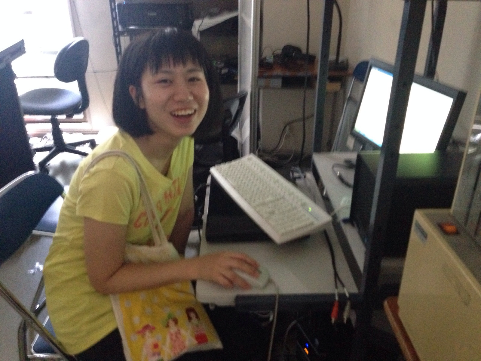 ゆいちゃんがスタッフ資料の何かを印刷にきています。 裏方(宣伝チラシ) エステル