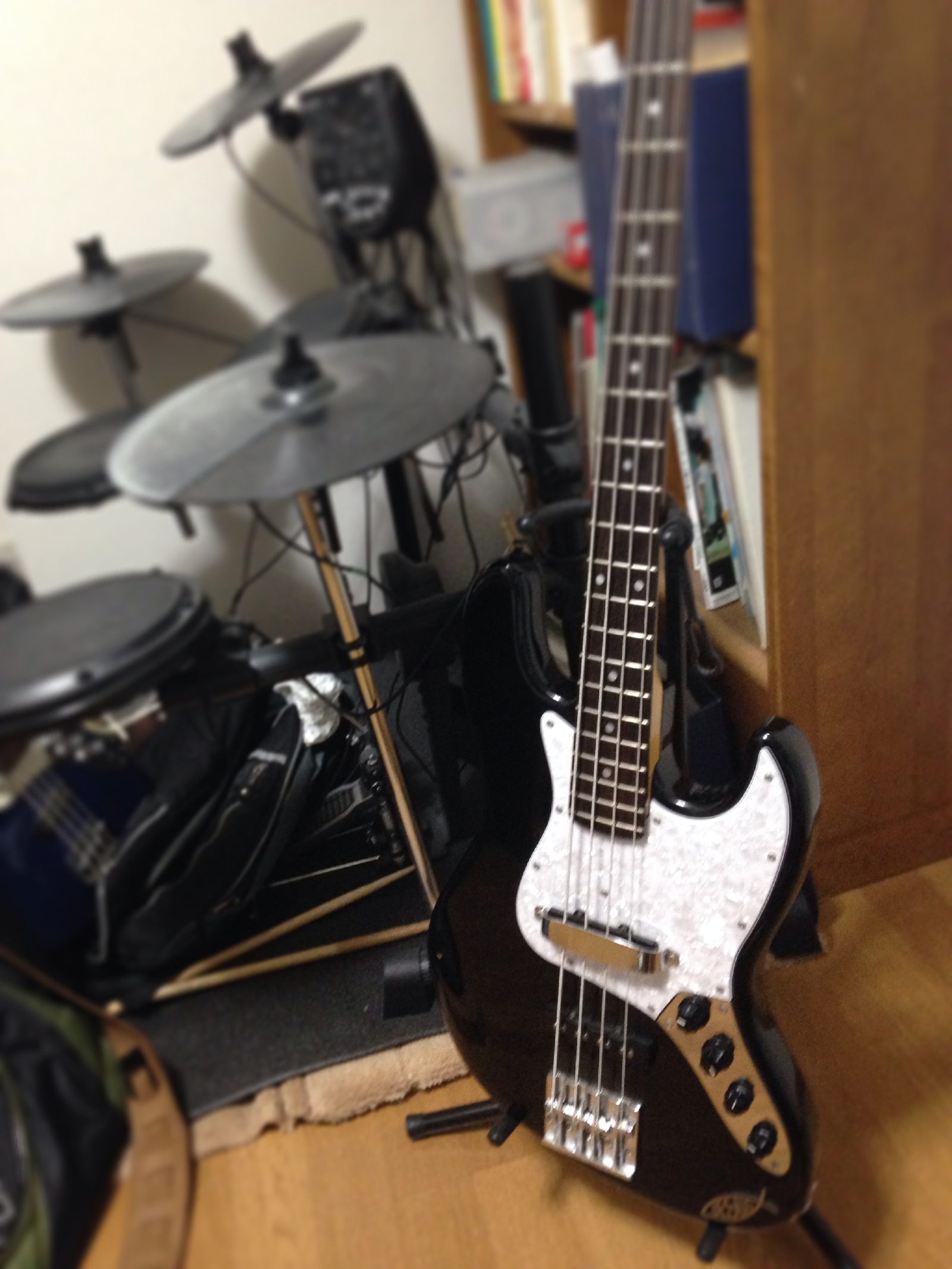 出かけるまでの時間、練習。今回はC&W ギタリスト(本業はベーシスト)のsamuelにお借りしたベースを弾きます。よく見ると部屋が汚い(笑) C&W makoto