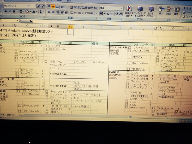 設営Skypeしながら、機材リスト作ってました!今打ち合わせ終了です^_^ ローディーNoah輝美