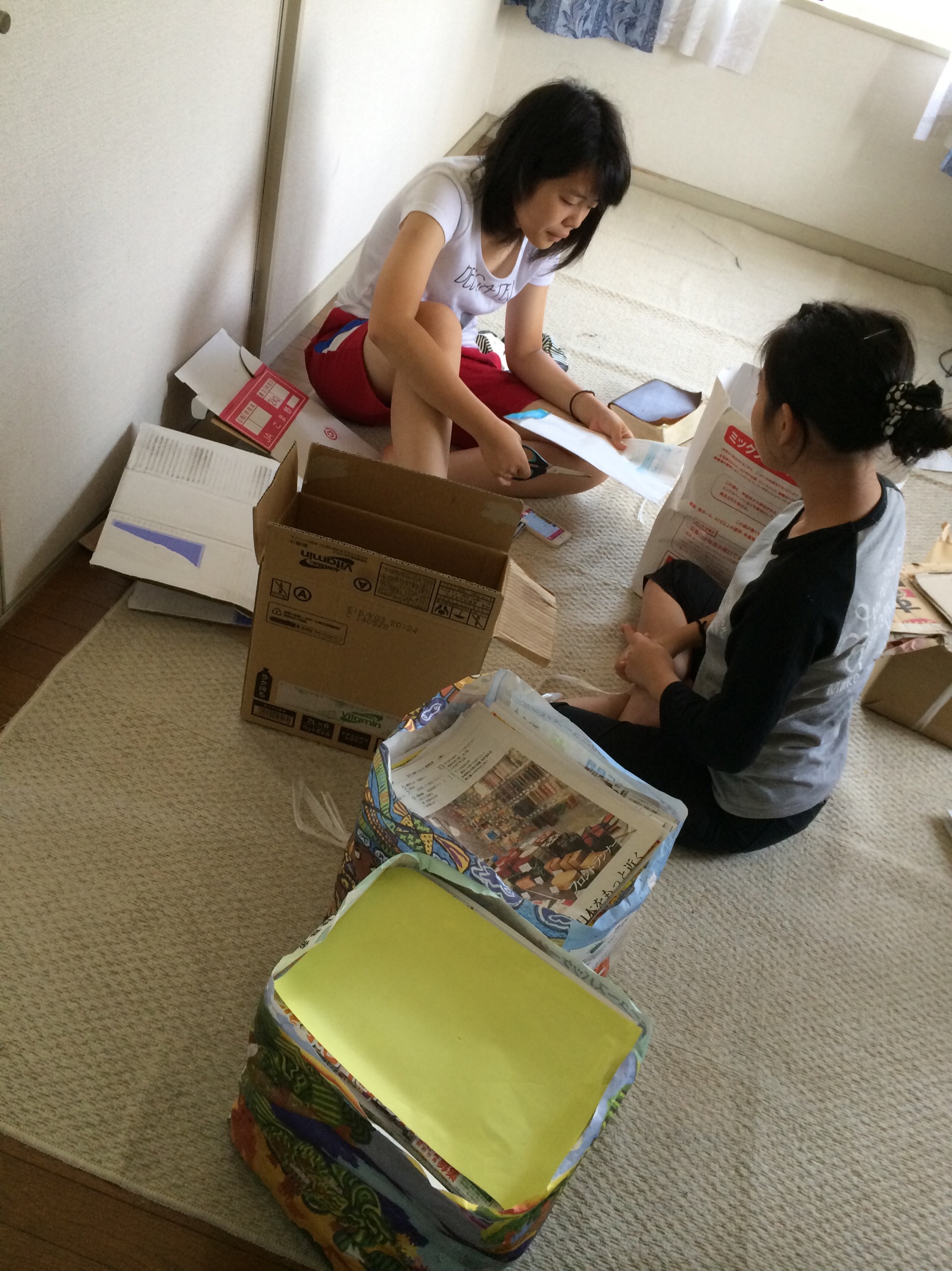 子どもたちがミックスペーパーの分別をはじめました。暑くなっきて、なかなか進まないようです。 TrueVine