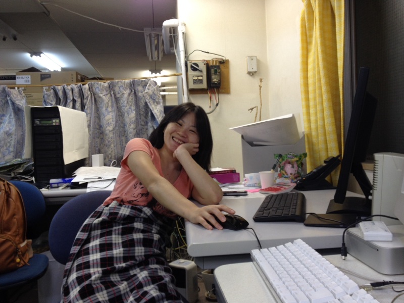 インターネットラジオ収録が終わり、編集中の裏方テモテさんです。私も一緒に収録しています。 こころごすぺるの話もしていますよ。 ラ・スポーザ satoko