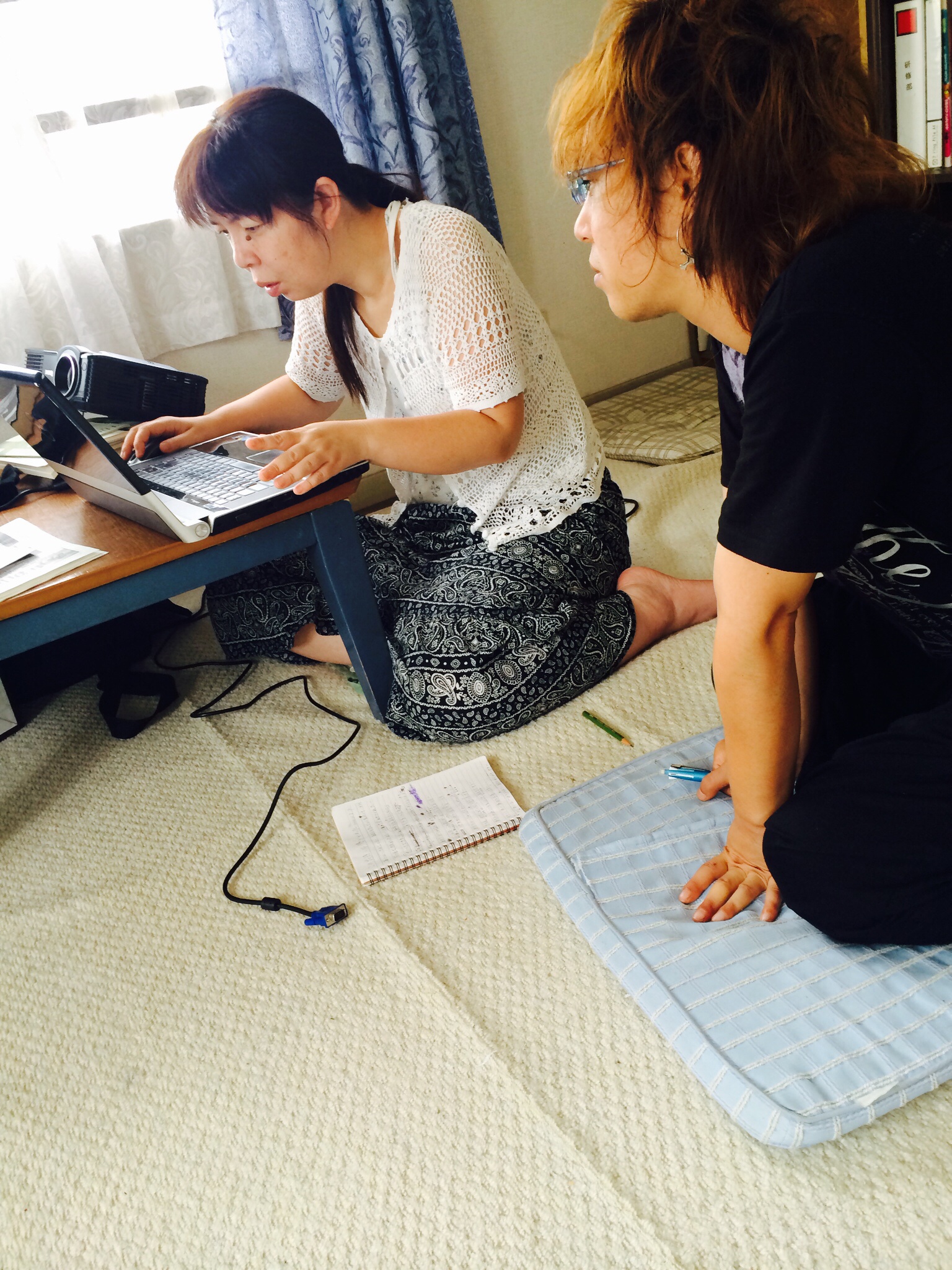 ゴスペルクラブに来始め、神さまを信じて、礼拝と祈祷会に毎回来続けているMくんです。 なんと、風のひびき第2集の応募曲も作ってしまいました! 素子さんが楽譜にしているところです。 TrueVine