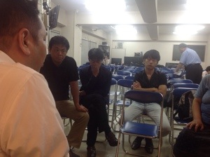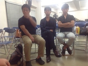 設営3兄弟の益川さん、樋口さん、漆間くん。 仲良く並んでミーティング参加中!