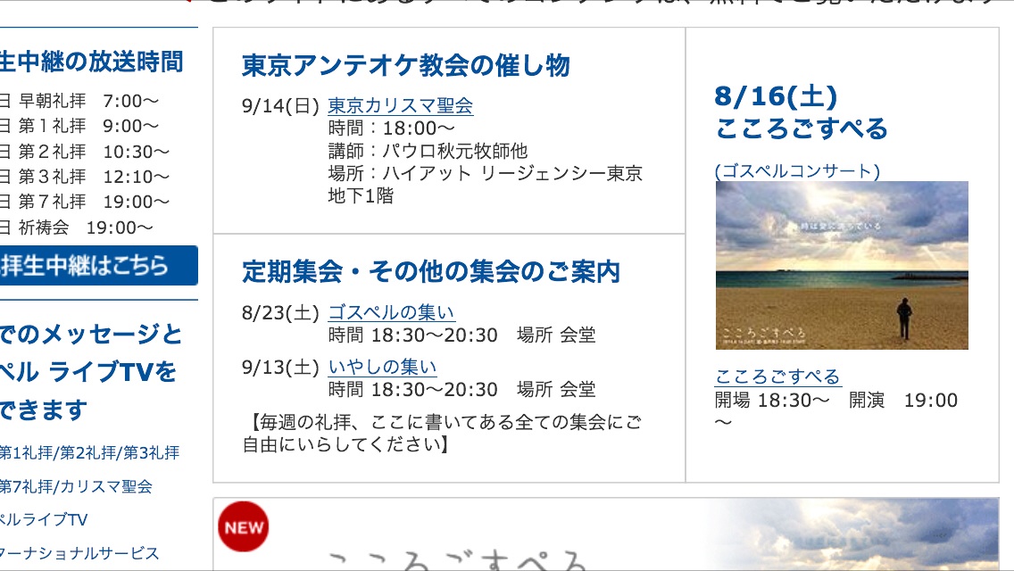 東京アンテオケ教会のホームページのピックアップにもこころごすぺるが掲載されました! いよいよですね! Gifts samuel