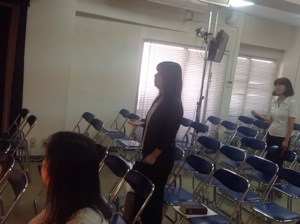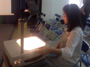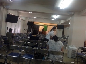 月曜礼拝中! プランナーの真境名牧師、昨日は夜遅くまでミーティングしてました。