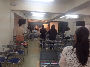 萱野牧師が賛美リーダーで、ラスポーザのお二人がコーラス! 豪華メンバーでの牧師賛美です。