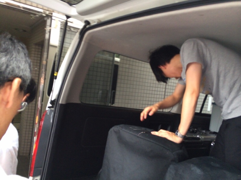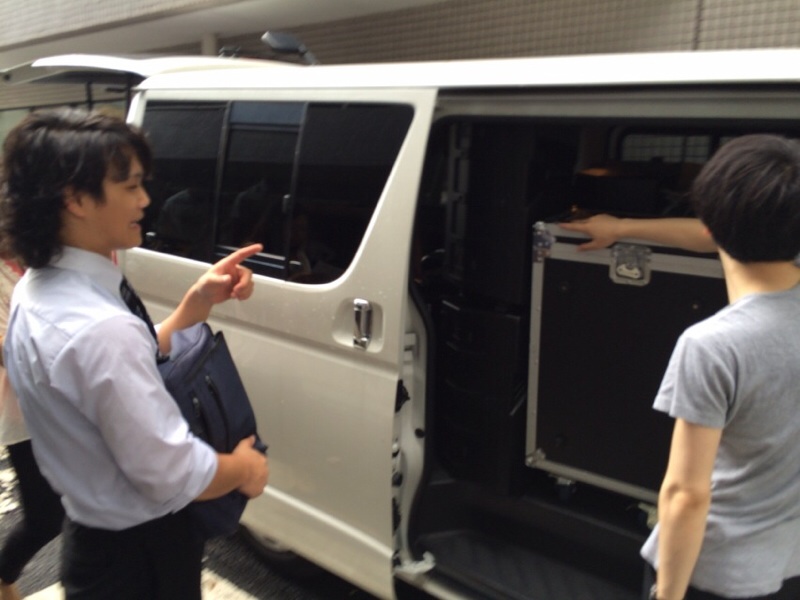 設営 機材搬出中です。 今は雨が止んでるので助かりました。 設営