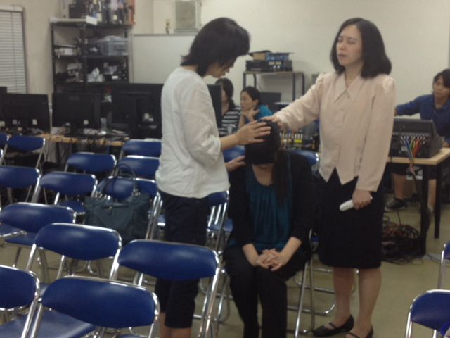 いやしの集いが終わって、責任者のまどか牧師を中心にミーティングと感謝のお祈り。