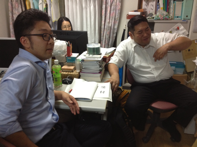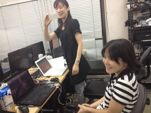 明日の準備に勤しむお二人。 志生子ちゃん、ブログアップももちろん。