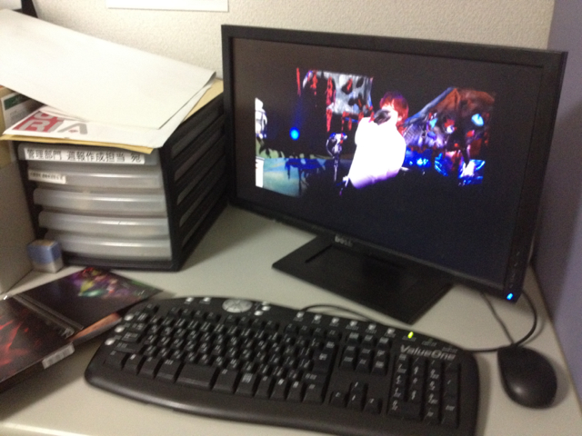 ライブ映像のDVDを熱心見ています。真剣そのもの。