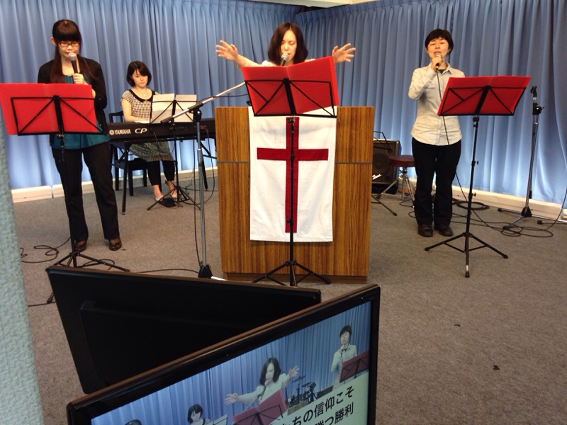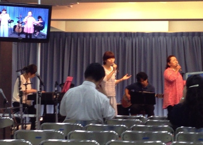 今日メッセージされるりょう子牧師チームによる賛美の時。集まった全員でゴスペルを共に歌います。