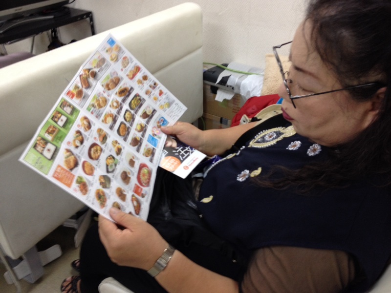 ケータリングのまどか牧師。お弁当チェックに余念がありません。