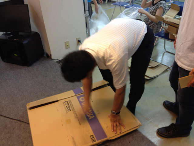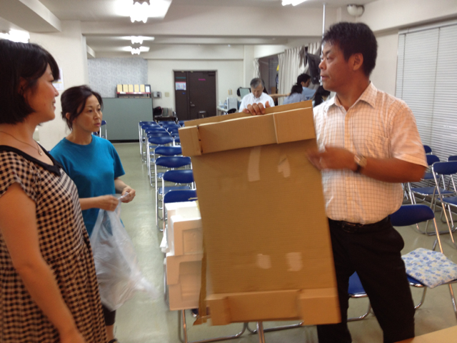 空き箱片付けが始まりました。 壊し屋?益川さん、出動。