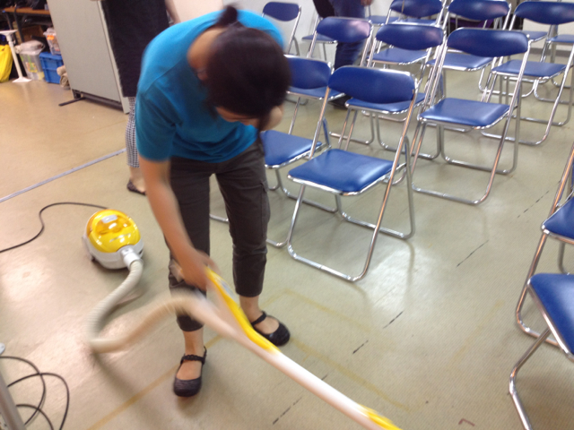 ダンボール紙や発泡スチロールの屑をきれいに掃除します。 授業中と打って変わって機敏な動きのojiさん。