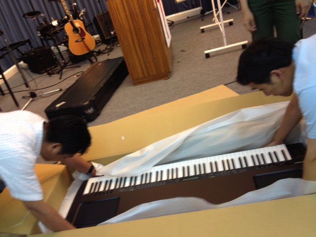 コンサートに向けて?と伺いましたら、超ハズレと稲川牧師。 明日に向けての準備でした。