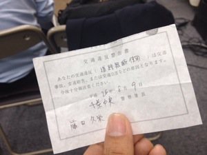 路上ライブで警察に止められた時にもらった切符!初めてもらいました! 感謝します!