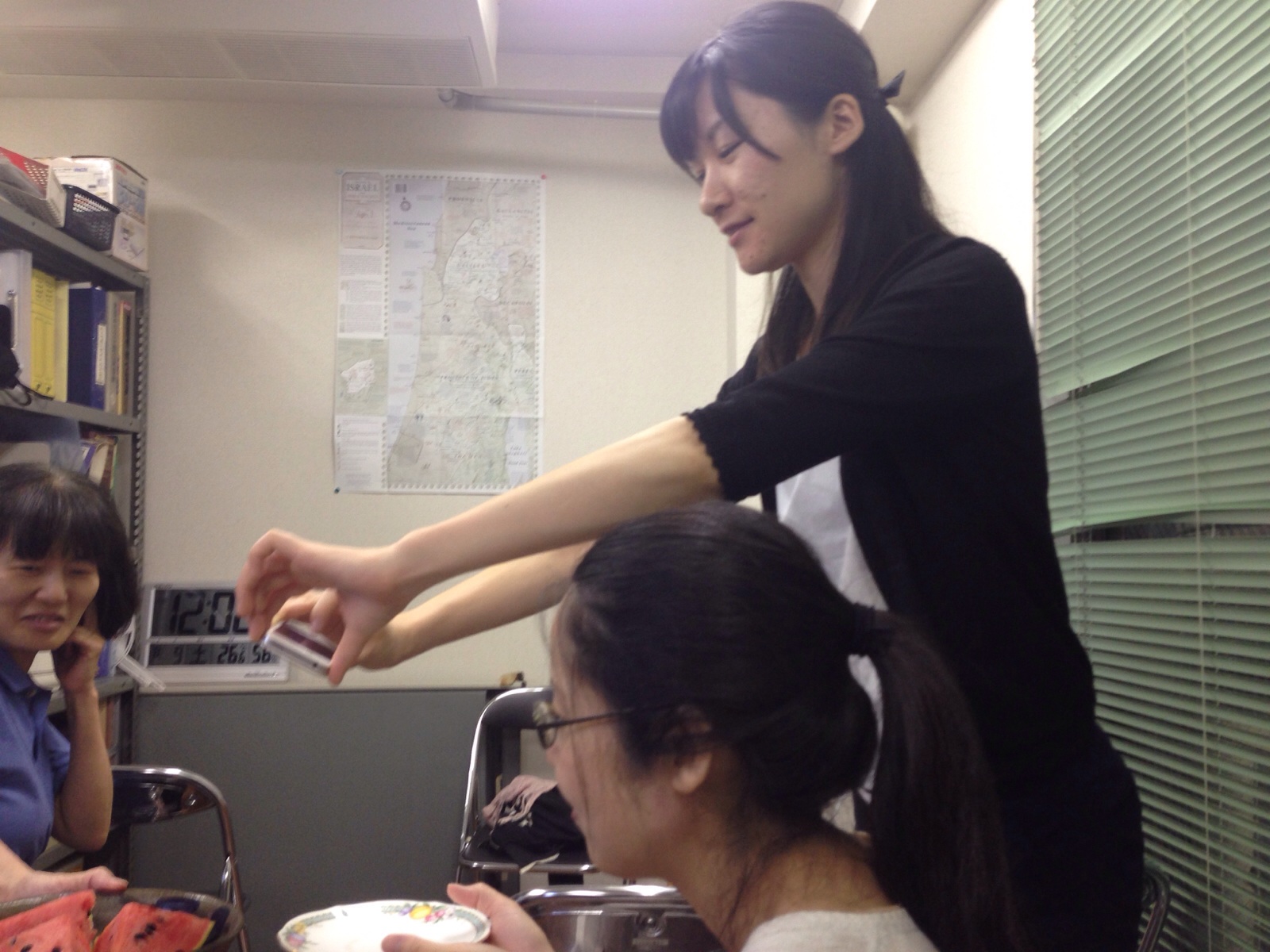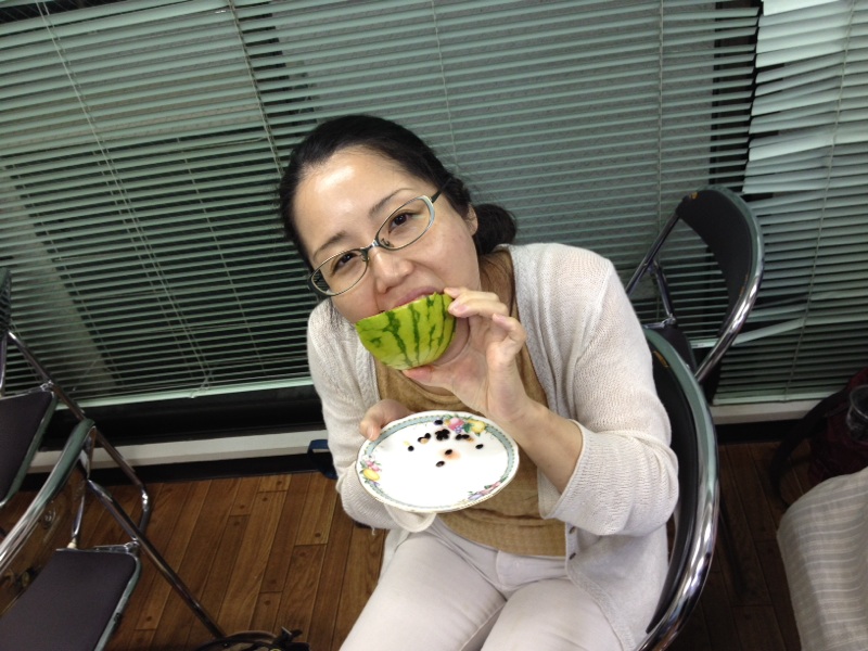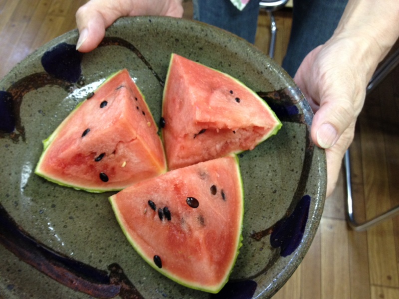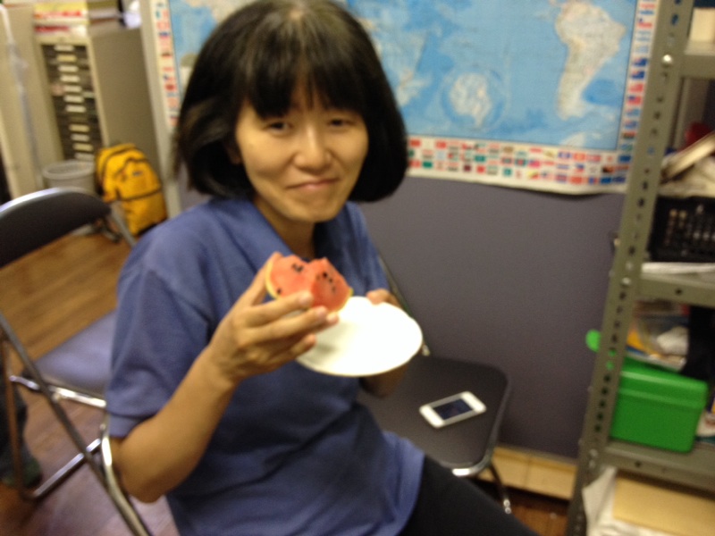 徹夜祈祷会前半終わり!Tさんからすいかの差し入れ〜。