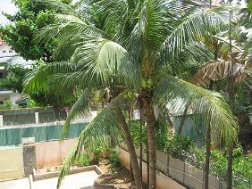 庭にあるココナツの木です。たくさん実をつけるので、木登り名人の子ども達が登って取ってくれます。カンボジアには、ココナツを使った美味しい料理やおやつがたくさんあるんですよ!
