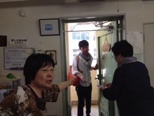 孤児院事務局ブロガーとしてこれから活躍される稲川さん! 吉田さんからレクチャーを受けています。