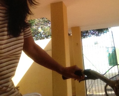 ブラジル人はとてもきれい好きで、いつも掃除をしています。私が冗談で、日本では大掃除の日があって、一年に一度だというと、大爆笑。掃除は好きですが、あまり手をかけないで掃除をしたいブラジル人が考え出した掃除用品。RODO(ホド)というもの。ホースでじゃ~~と水を流して、この特大ゴムつきベラのようなホドで水を取り除いで掃除、終わりっ!