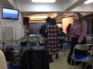 1人1人がパンとぶどう酒を取りにいきます。 月曜 第2礼拝より。 mariko