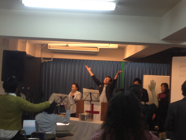 メッセージの窪田牧師、こころから神様に賛美
