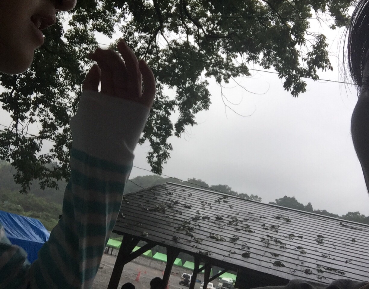 雨がすごくて、テントの中に雨がはいってきちゃいました。ガムテープで防止してます しへん