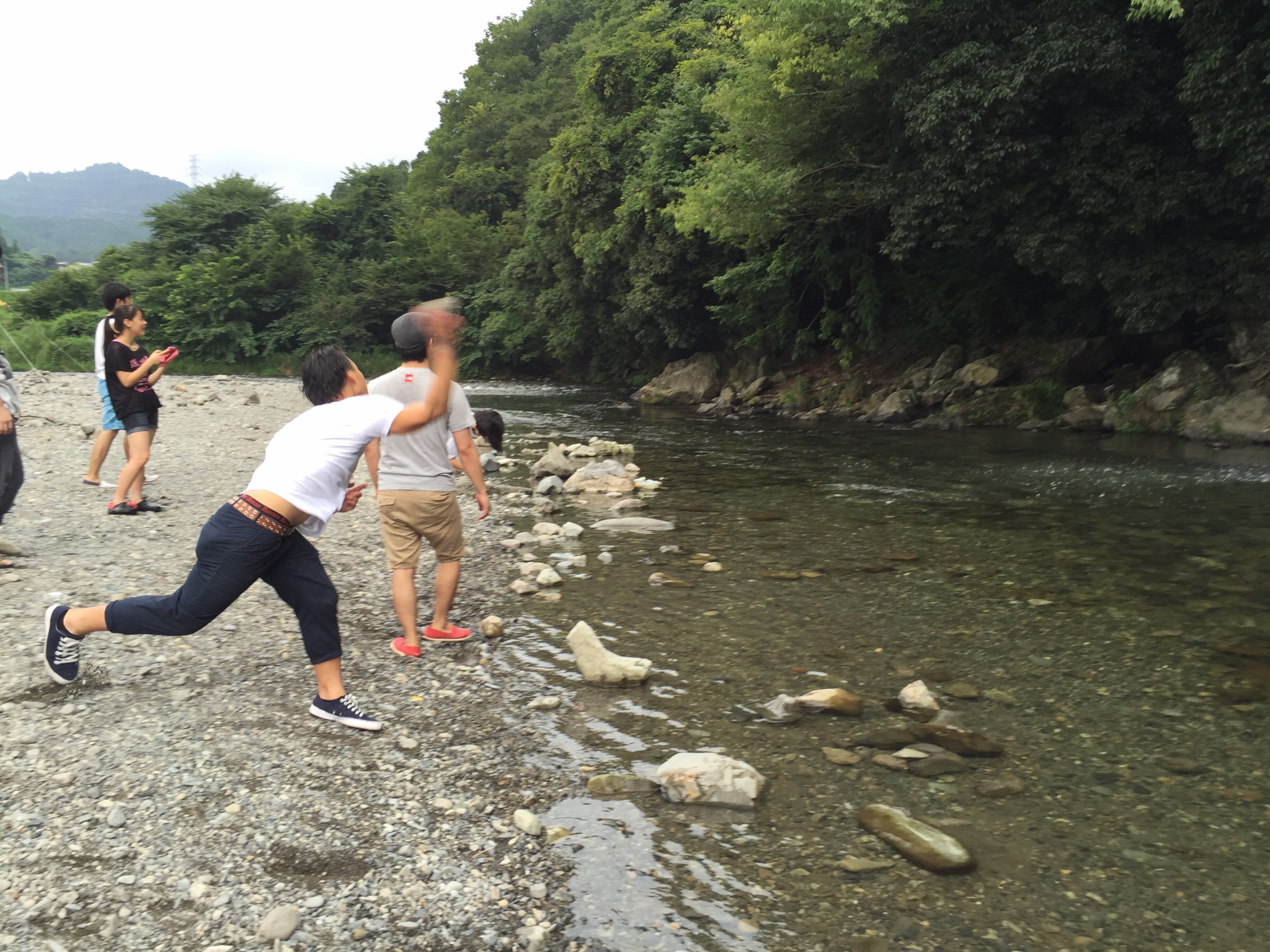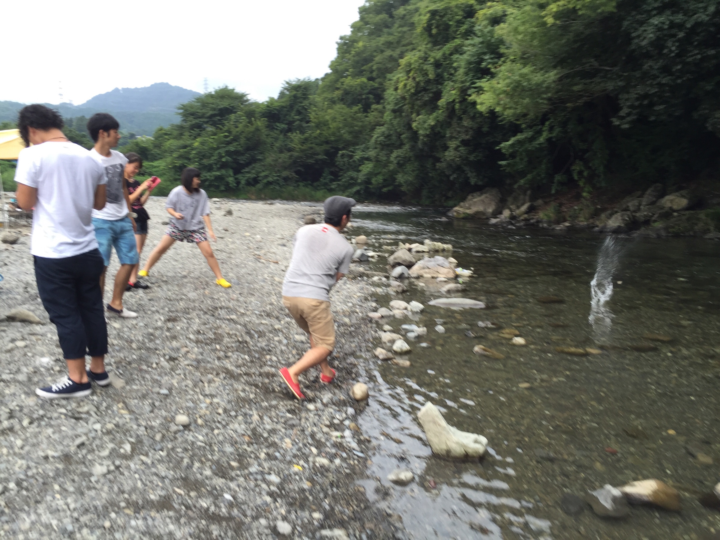 石投げー!投げ方違う人がいる。笑 奈緒美