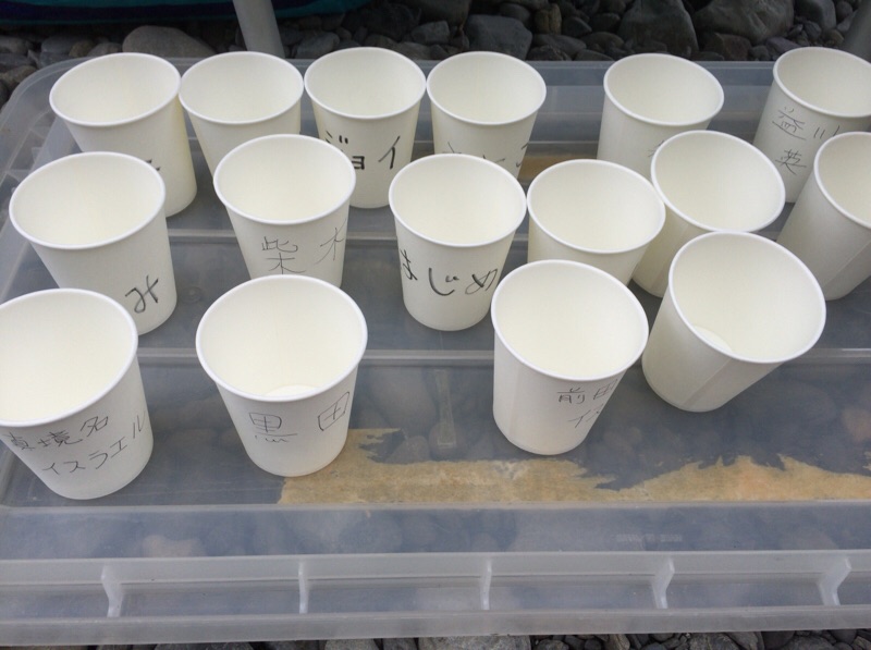 吉田さんがコップに名前を書いてくださっています♫ やまなか