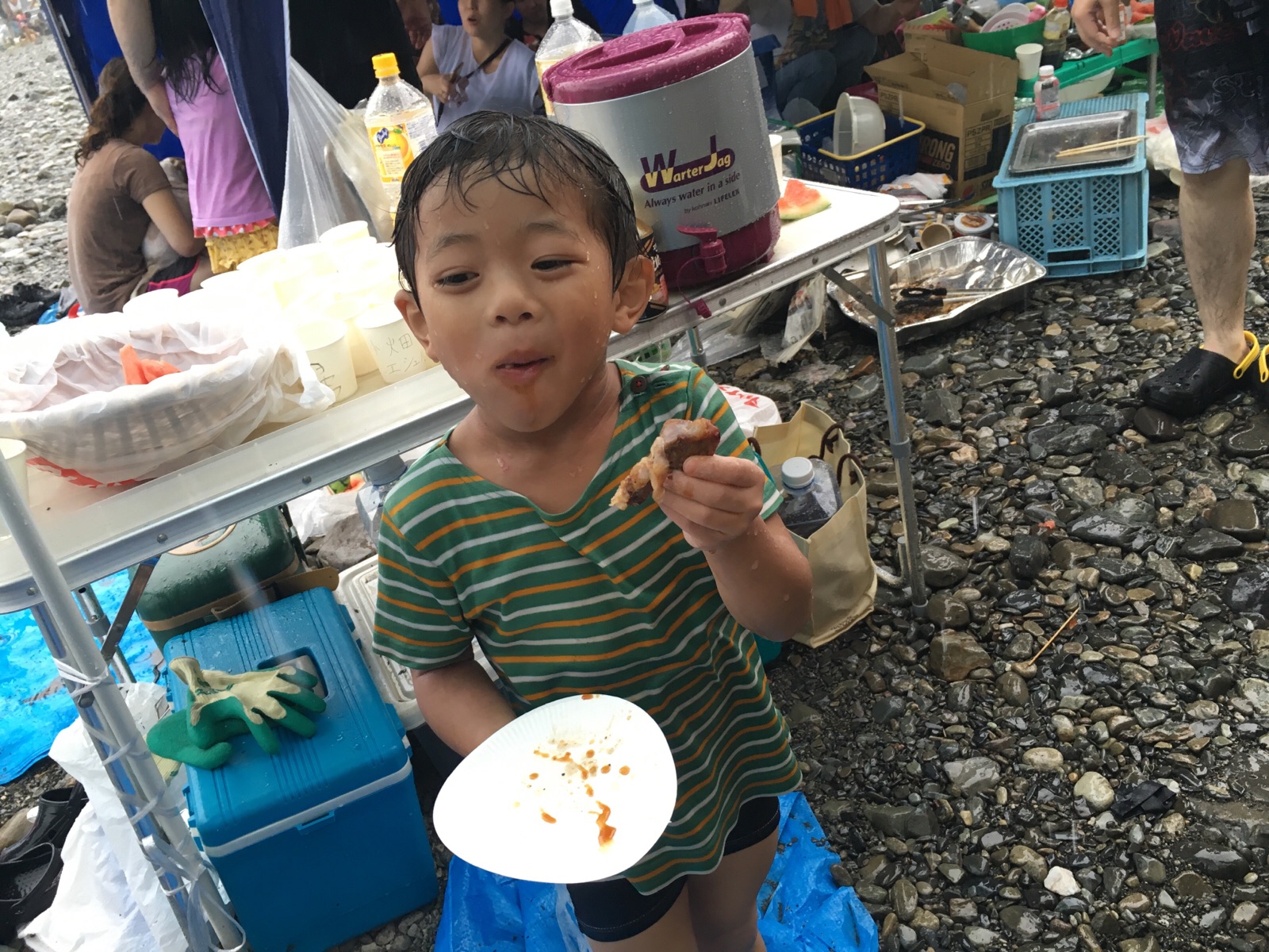 ゲリラ豪雨のような感じで、テントの中へみんな移動。 子供たちはマシュマロ食べていました☆ akemi.m
