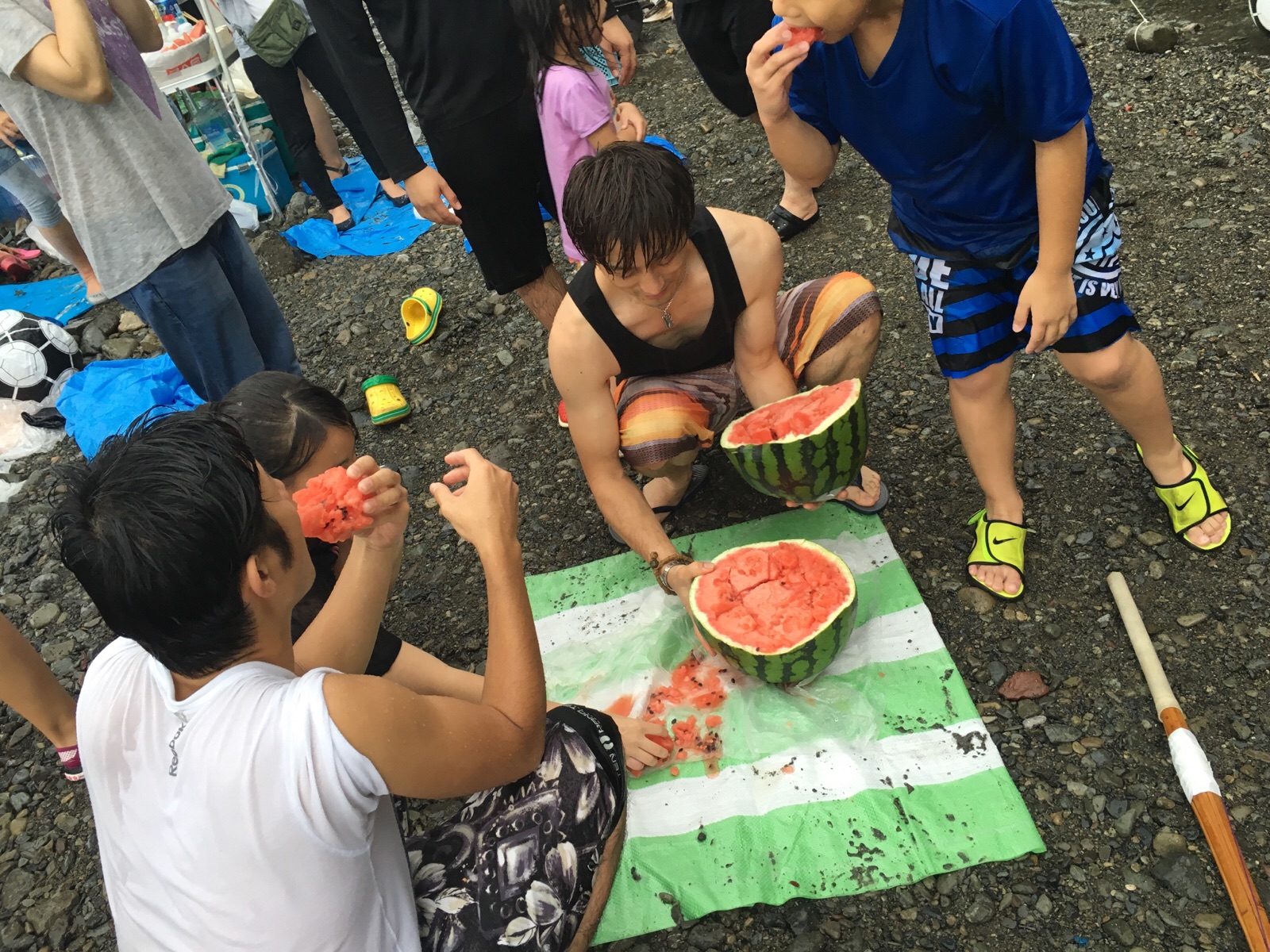 スイカ割り、なかなか割れず最後は手で割ってました(笑) akemi.m