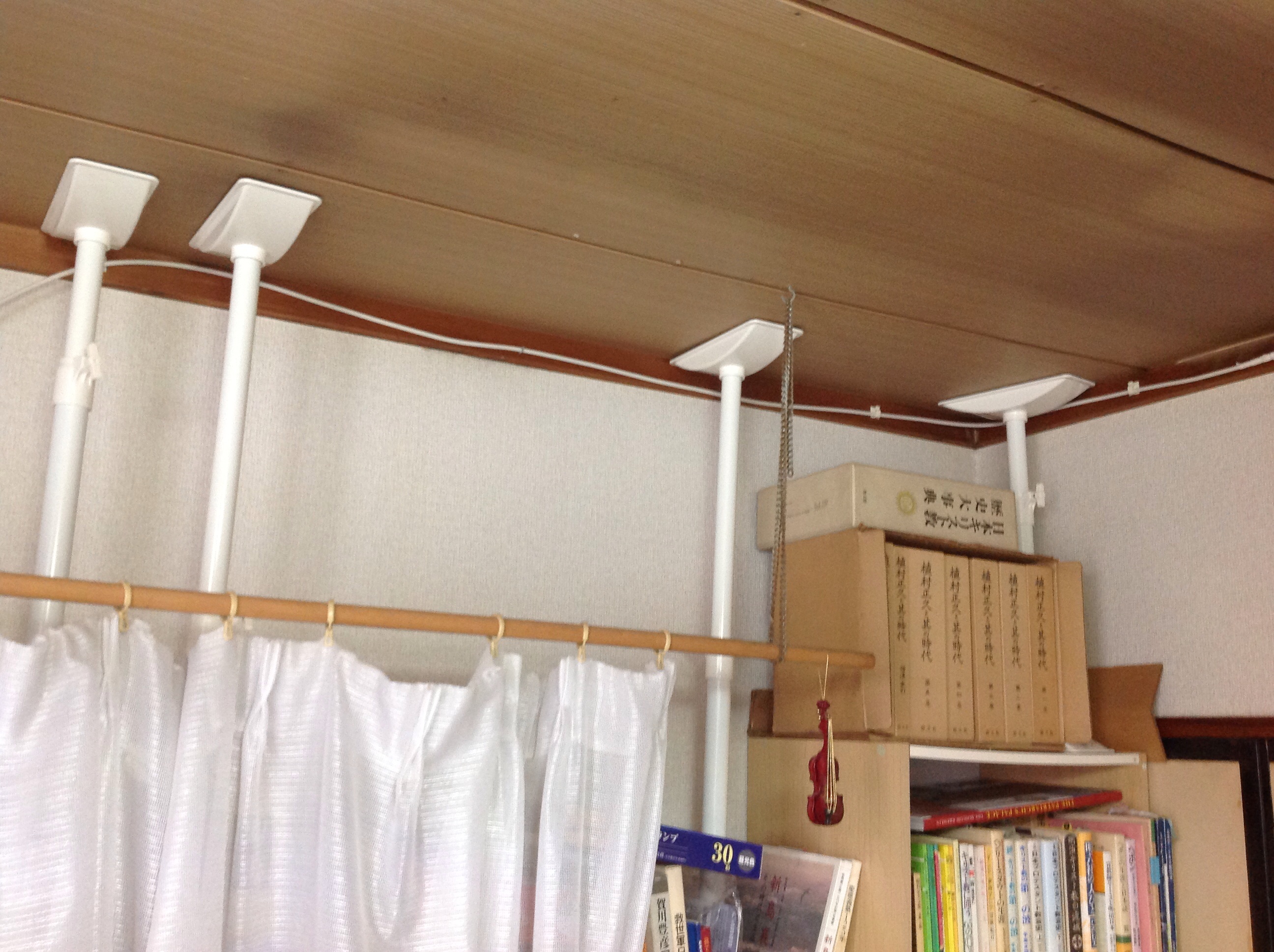 我が家は本の山なので、本箱やタンスにはみんな、つっかい棒をしています。