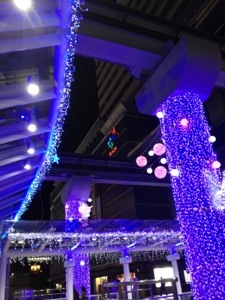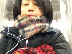 電車を待っているあいだ、年末コンサートに向けていただいたオケをきいています! (ホームにはあたたかい待合室があります。)