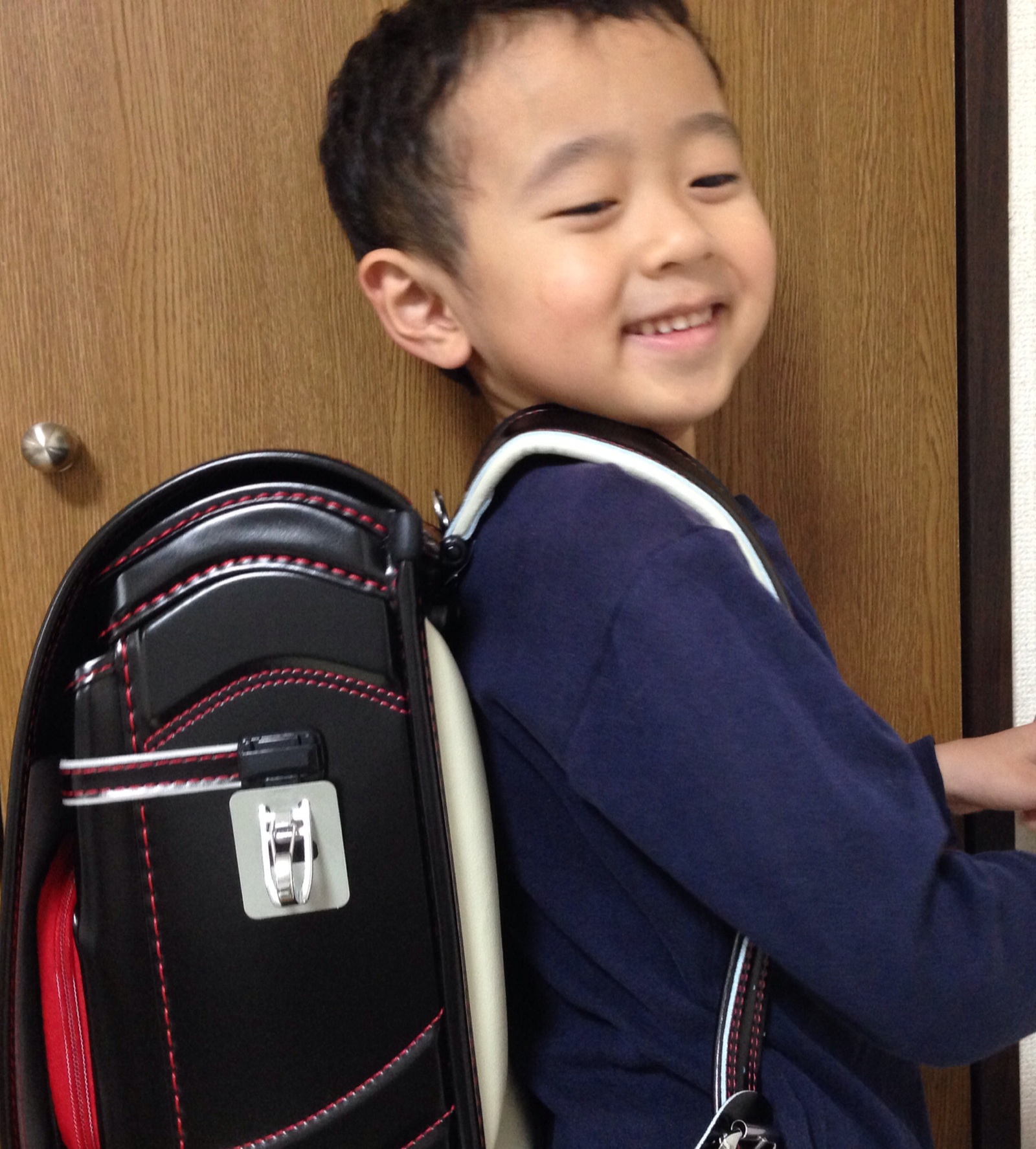 4月から一年生の次男。 ランドセルが届きました♫ うれしそうです(^-^)