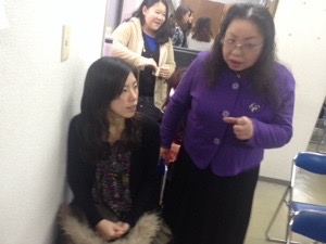 インマニュエルのみぎわさん、まどかさんと神学校の授業についてお話中。
