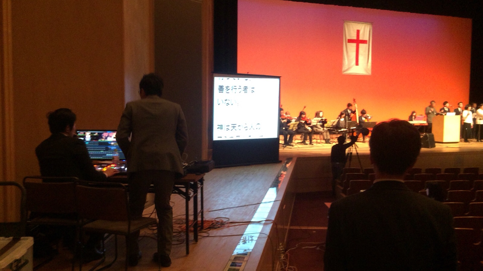 集会がはじまり、特別賛美です!クレーンが狙って撮っています(^-^)