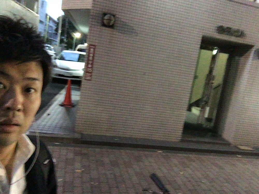 会堂到着! もう外は暗いですね。 Samuel
