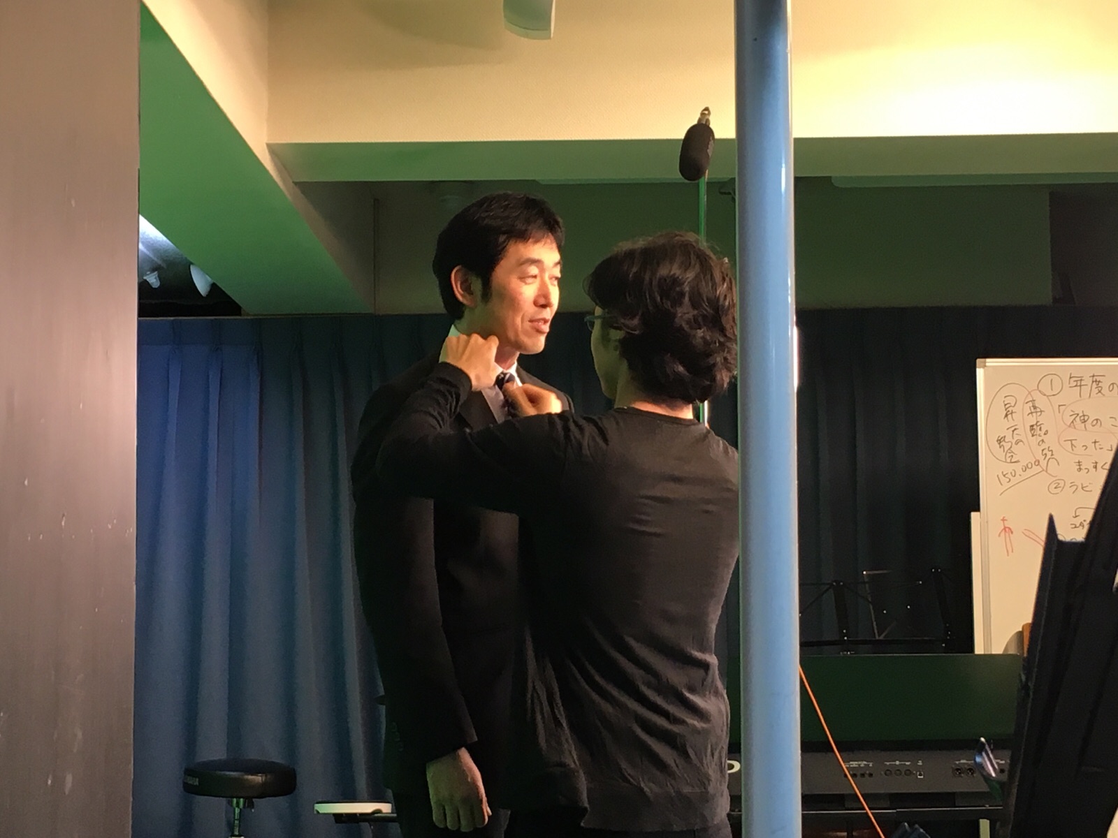 かいがいしく、佐藤Pさんのネクタイを直すダビデ君!